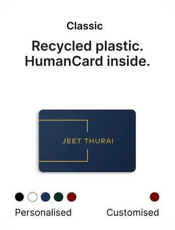 The HumanCard is crafted with a minimalist design and the precise dimensions of a credit card, making it a seamless extension of your professional life.